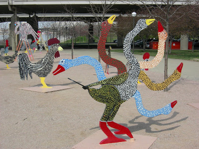 And these are back out: These are part of the Flock of Finns. They are fanciful birds created by Marvin Finn, a Louisville folk artist who passed away in 2007. They have been restored and are now residing permanently on the riverfront. And the easiest way to tell spring is here is this: