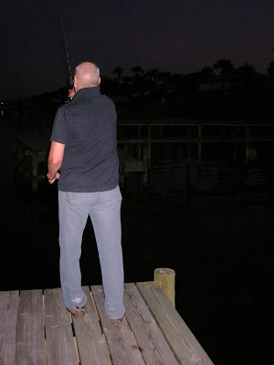 I have just come off of one of those crappy weeks that can't seem to get better, no matter how hard you try and how many positive thoughts I kept forcing into my head. Part of the reason this has been so frustrating is that I returned from vacation refreshed and ready to go. You know, sometimes you come back and feel immediately that you never left. This was one of those rare vacations where I came home well-rested and full of happy thoughts. So much for that. Work was a never-ending craphole with everyone on their worst behavior and much spewing of venom and vitriole. We also learned that we will be extending our Saturday hours and not receiving any comp time for them. Between the ones of us that this affects we have theatre tickets, t-ball games, family and other business obligations and just the general need to have time off that will be compromised. I guess I'll keep my mouth shut and give thanks that I still have a job. Anyway, in the spirit of forcing this coming week to be better, here are a couple more vacation pictures that make me feel a little more mellow. This is the view from a friend of a friend's dock where we went fishing one night on the Intercoastal: