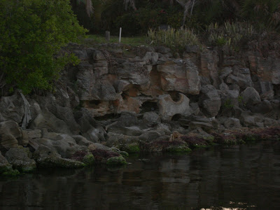 And here are the holey coquina rocks that form the wall along the intercoastal in this area: