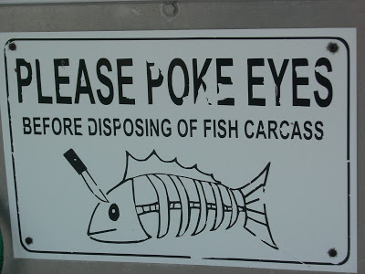 This sign was hanging over a fish cleaning dock at the Cape Canaveral Port Authority. Maybe chum eaters don't want to be looked at while munching down?