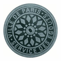 One morning I was meandering across the parking lot and onto the grassy divide when all of a sudden whoosh! Down I went, straight into a manhole whose cover was not where the cover is supposed to be, like on the manhole. My manhole was not fabulous and did not say "Ville de Paris" like the one pictured above. My manhole cover, if I could have found it, probably said,"I have been moved from my rightful spot so watch out when you walk across the grassy divide or you will find yourself assdeep in sewage and lose one of your good flats and have to be trundled into the hospital in a wheelchair".