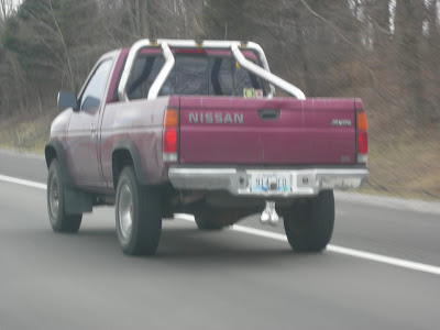 So this is what people spend their money on in the economic downturn. This obviously has nothing to do with being hip or stingy but I've had a long week, my dad's in the hospital and I couldn't resist. I cannot imagine what a set of shiny chrome plated swinging testicles costs although judging by the size of them they can't be cheap. We were on our way to my parent's home for Sunday dinner last week when we passed this paragon of taste and self-esteem on the interstate. I can't believe that, living in Kentucky, I had never seen a set before. I made Travis McGee slow up and down until I got a good pic. I'm sure this man thought he was being stalked. Or that I liked his package. Wonder if they make giant chrome plated hoohoos......